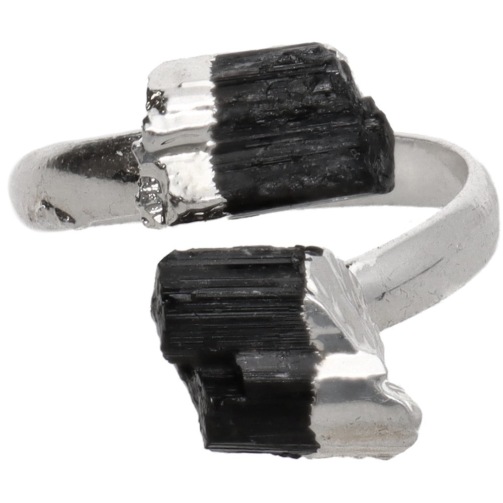 Anillo Turmalina Negra en Baño de Plata -A83-