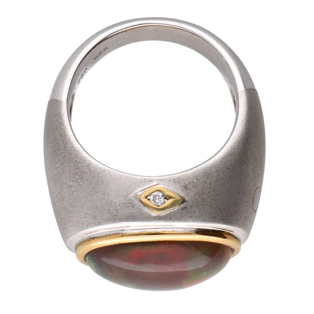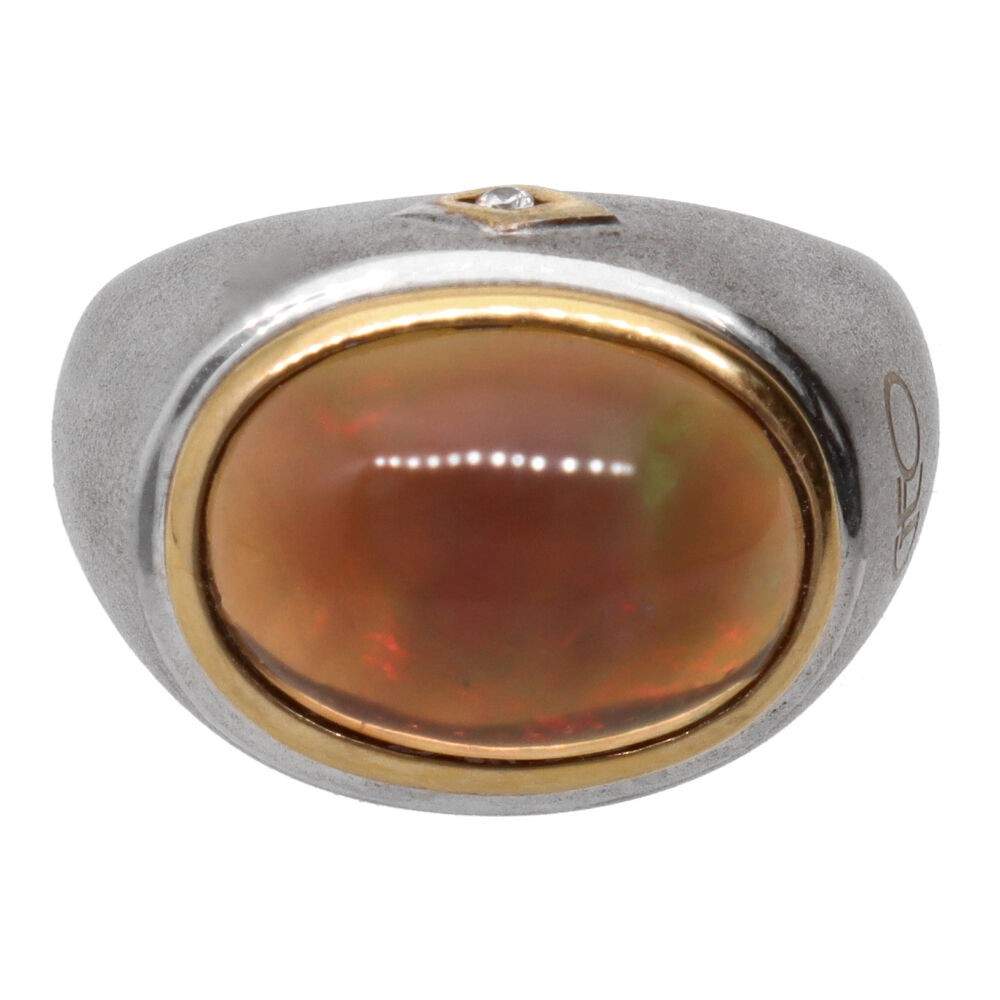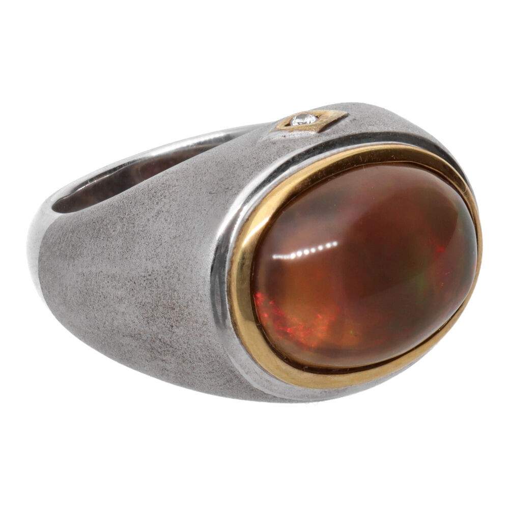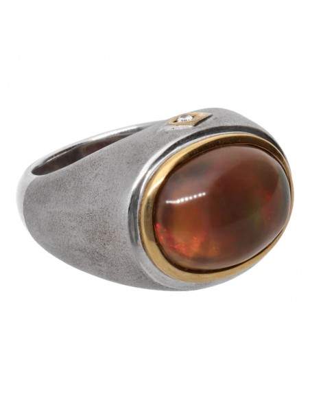 Anillo Ópalo de Fuego en Plata de Ley 925 y Oro 750 (19B)