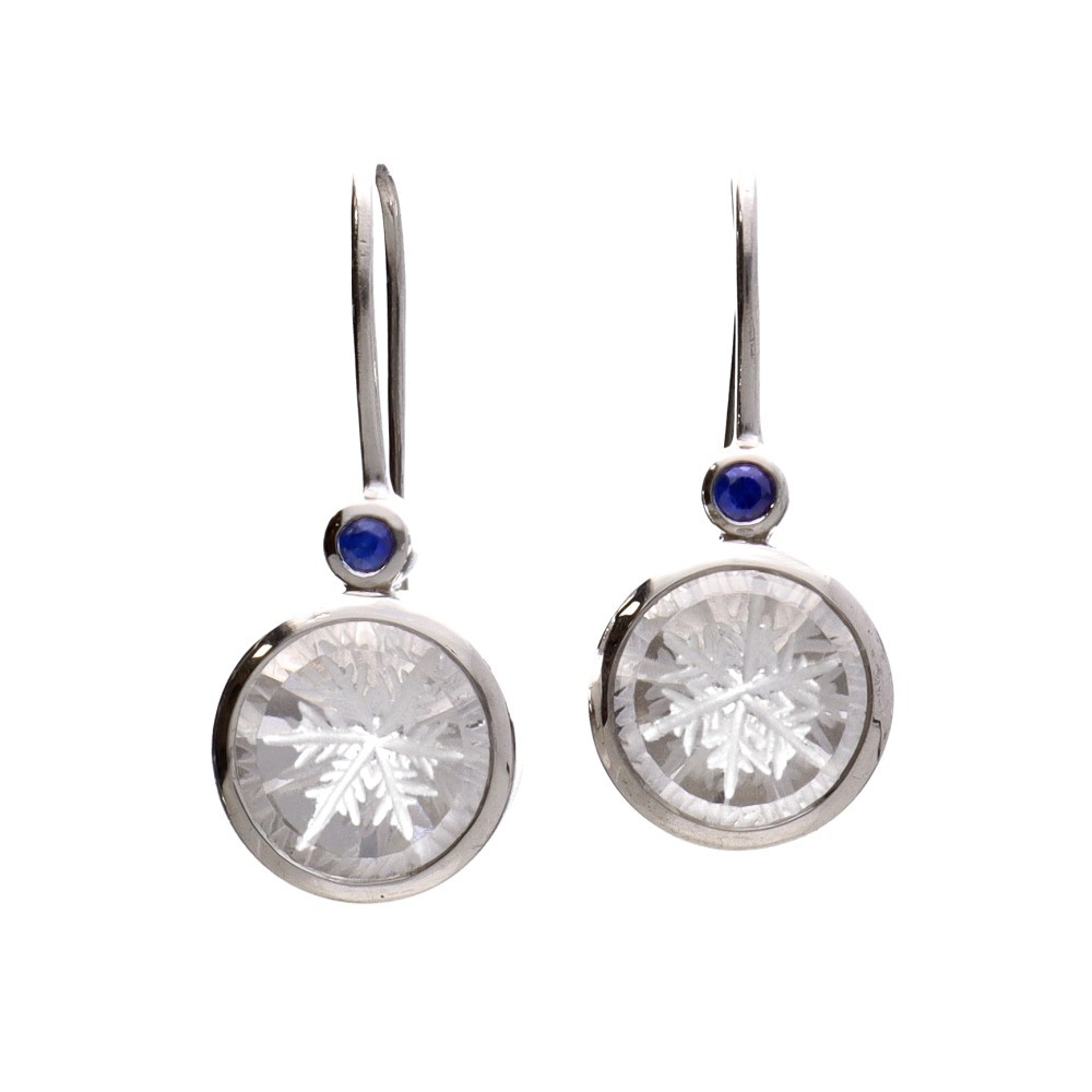 Pendientes Gotland Copo de Nieve de Cuarzo con Zafiro en Plata de Ley 925