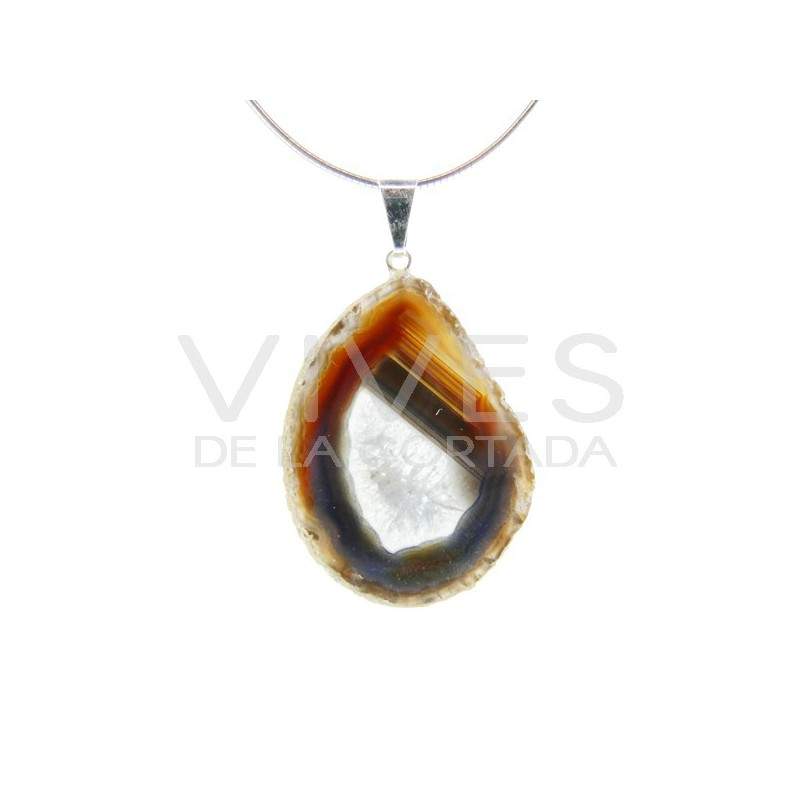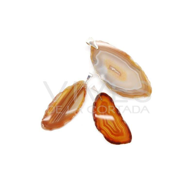 El Ágata es una variedad microcristalina del grupo del cuarzo, un tipo de calcedonia de varios colores que suele presentar bandas cromáticas. Existen muchos tipos de ágatas, su color depende de los diferentes materiales que pueda contener. Las más abundantes son de color gris, aunque también las encontramos en color amarillo, naranja, blanco, azul, marrón y rosa.