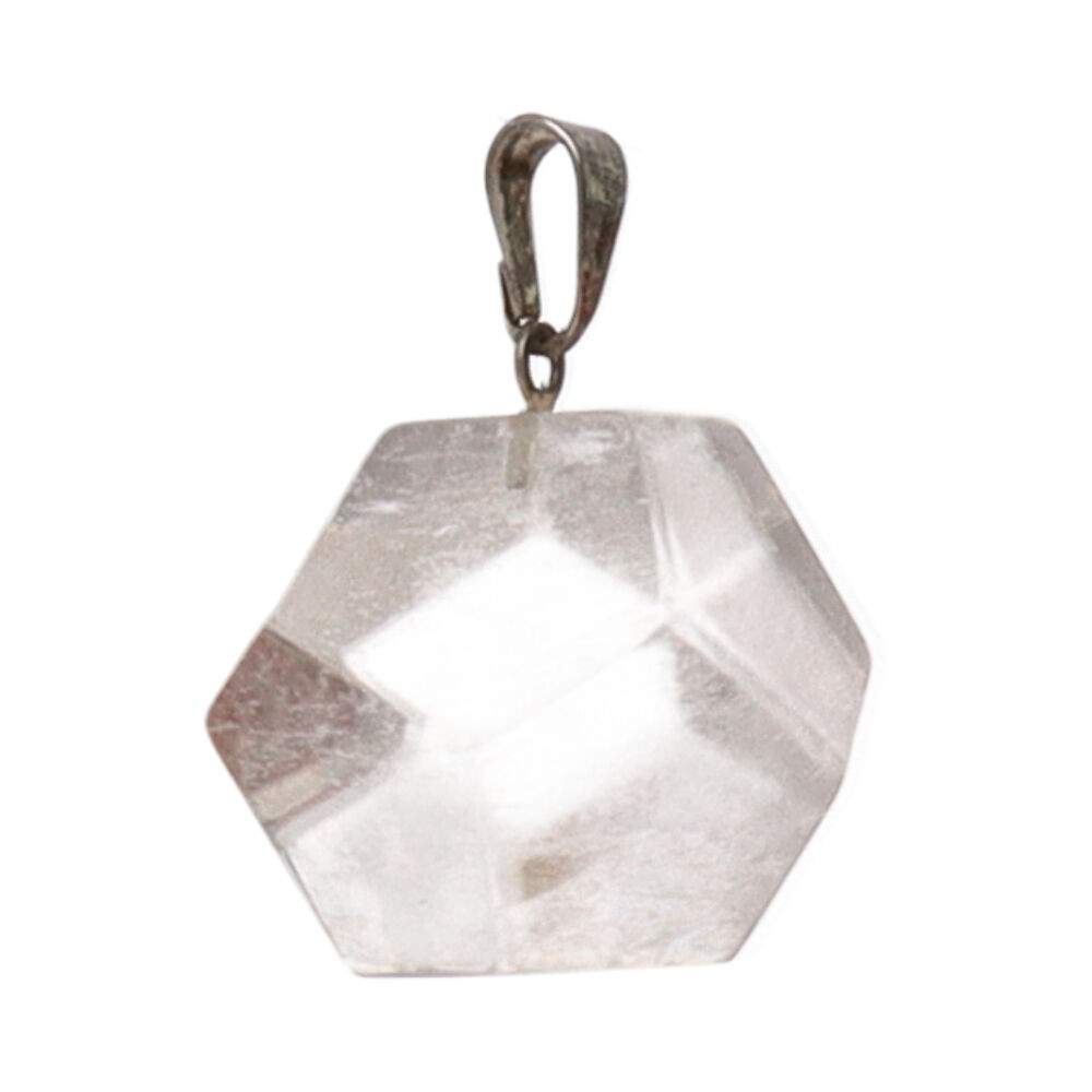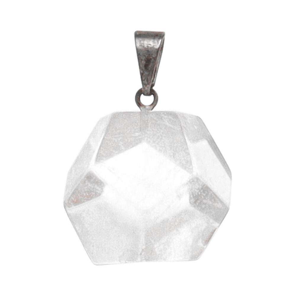 Colgante Dodecaedro de Cuarzo Transparente en Baño Plata