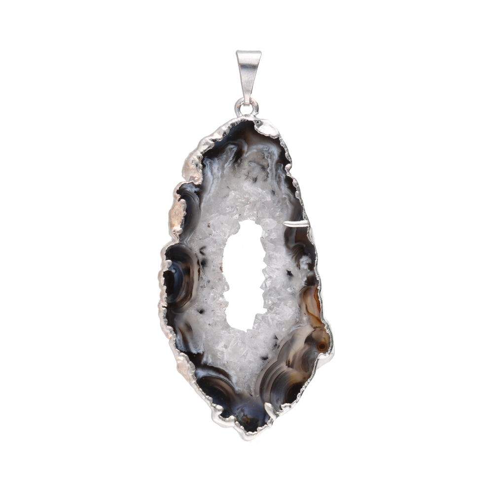 Colgante Gota de Calcedonia Cristalizada en Bruto en Baño de Plata