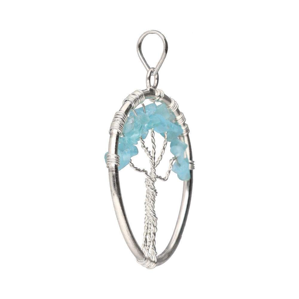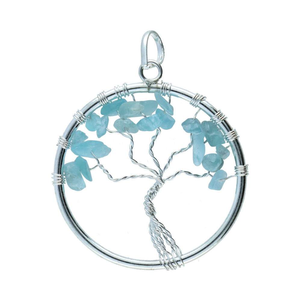 Colgante Árbol de la Vida con Aguamarina en Baño de Plata
