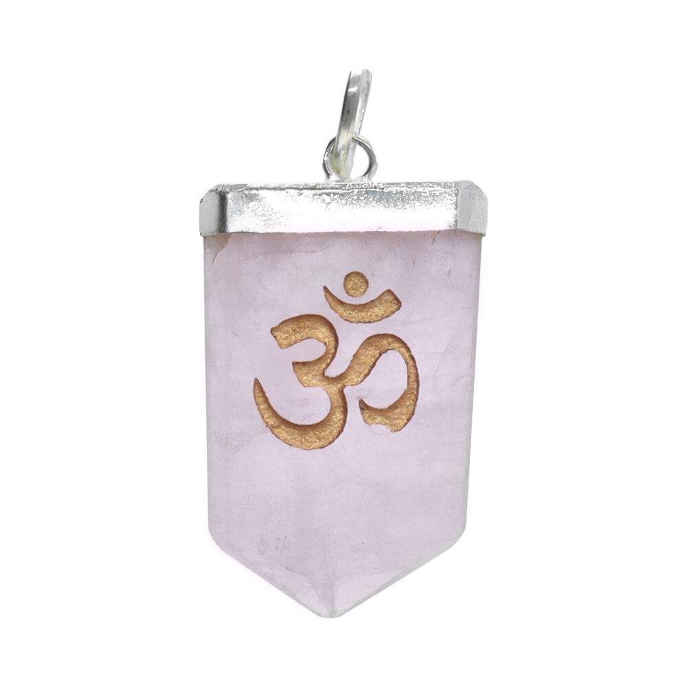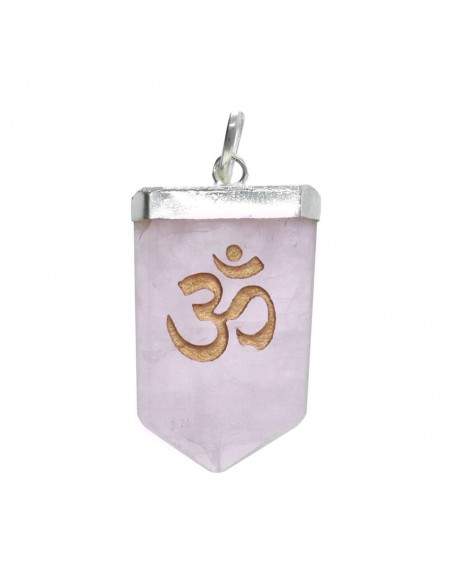 Colgante de Cuarzo Rosa Om en Baño de Plata