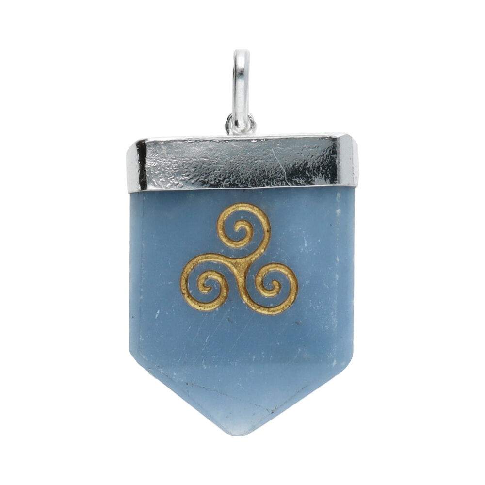 Colgante de Cuarzo Azul Triskel en Baño de Plata