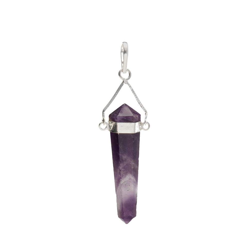 Colgante Hoja de Calcedonia Cristalizada en Bruto en Baño de Plata