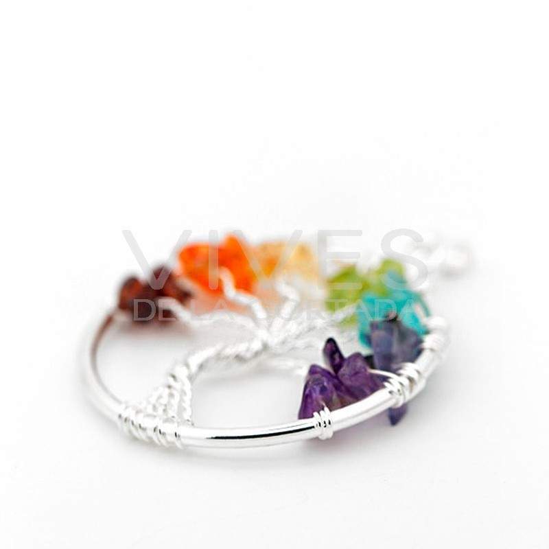 Colgante Árbol de la Vida Chakras en Baño de Plata