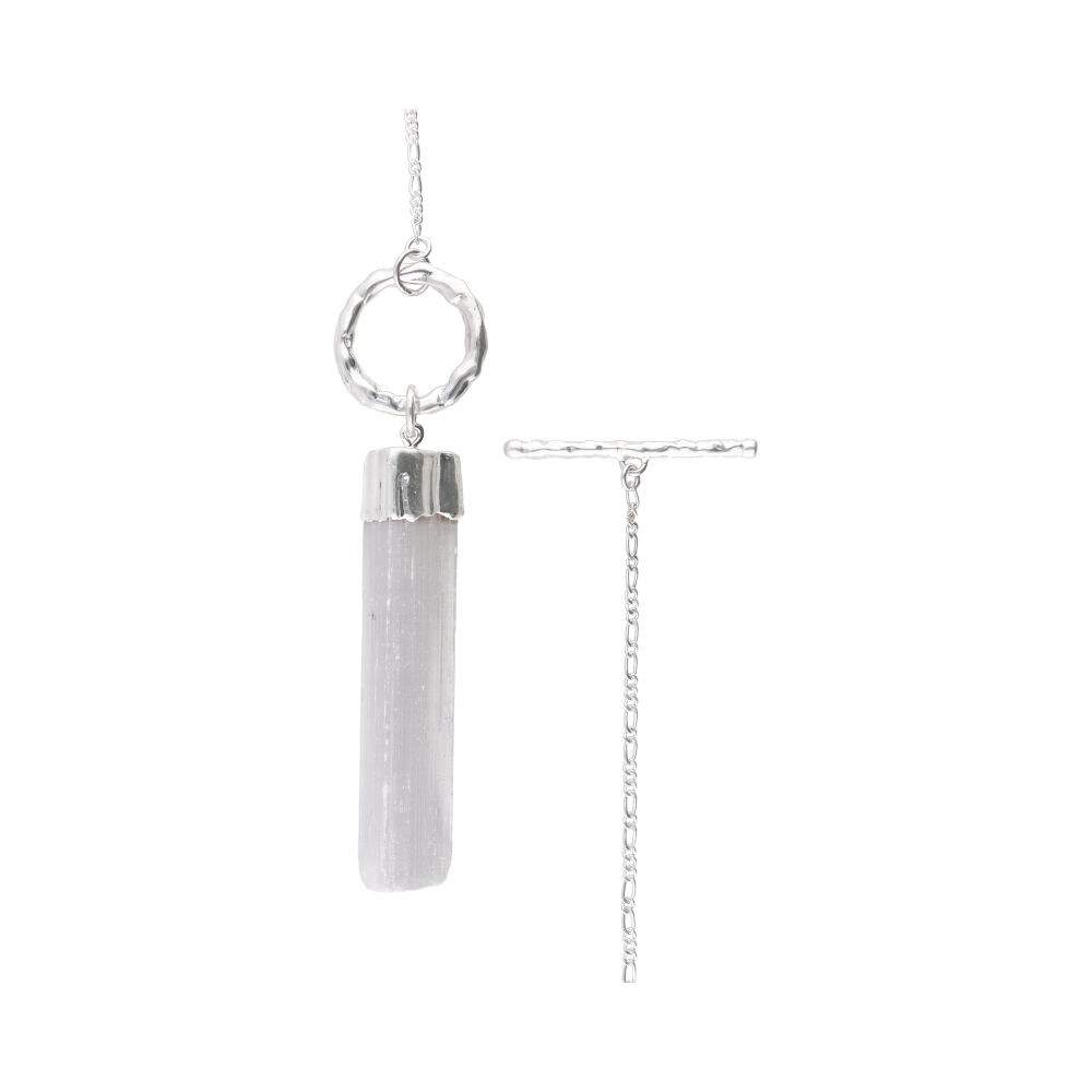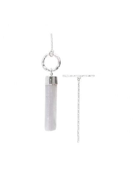 Colgante de Selenita en Bruto Desmontable en Baño de Plata