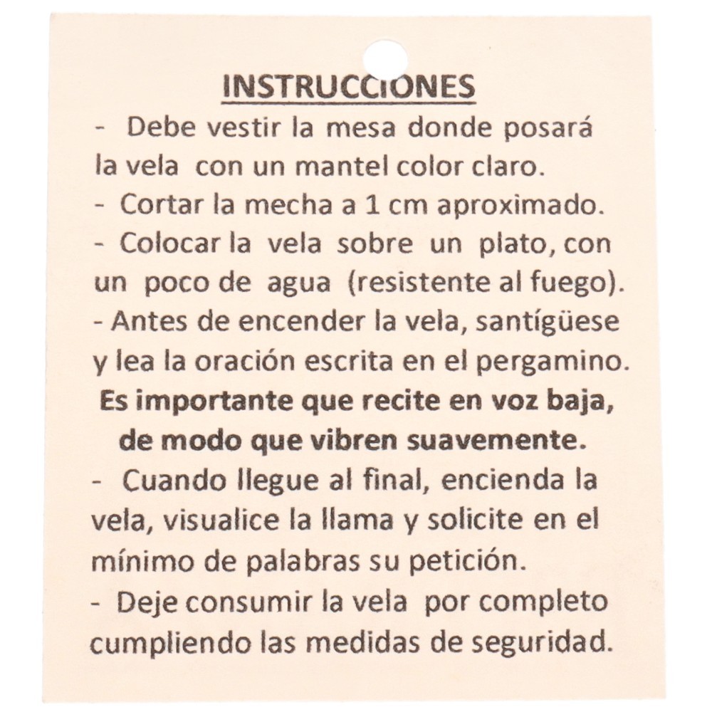 Elaborated with the perfect combination of grass and color so that the energy of its light radiates and releases in the being and its environment the necessary element or purpose that you want to achieve. These also come with a manual of practical and simple instructions as well as the prayer to be recited at the time of lighting the flame.