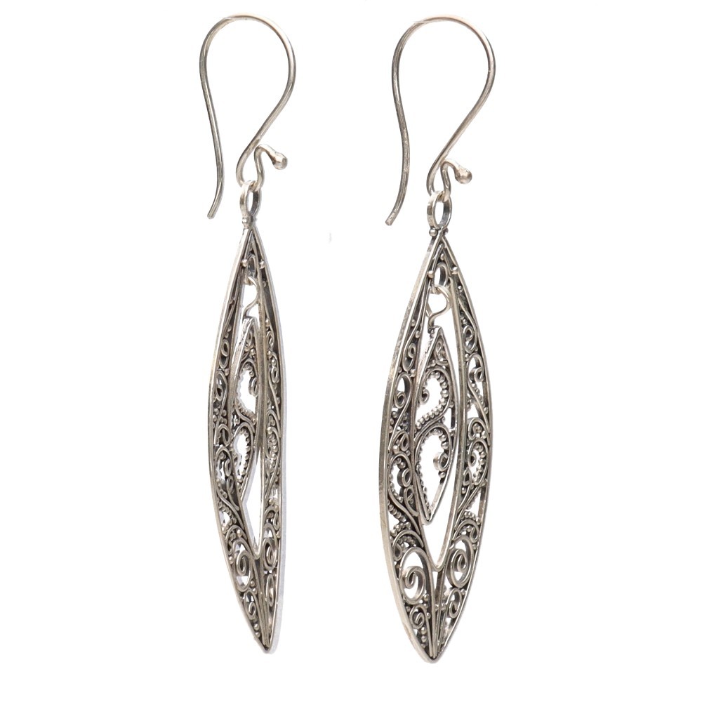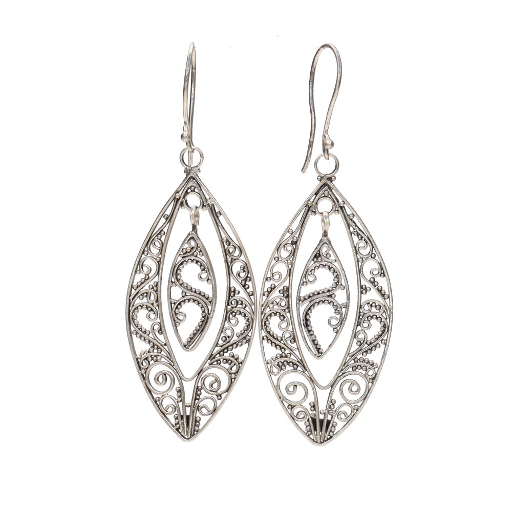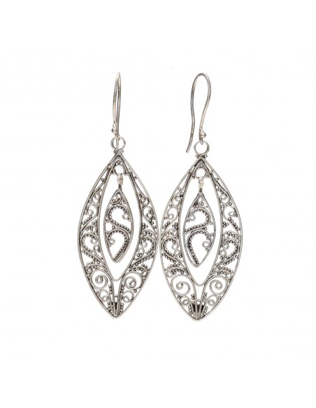 Earrings Filigree Feathers Circle in 925 Sterling Silver