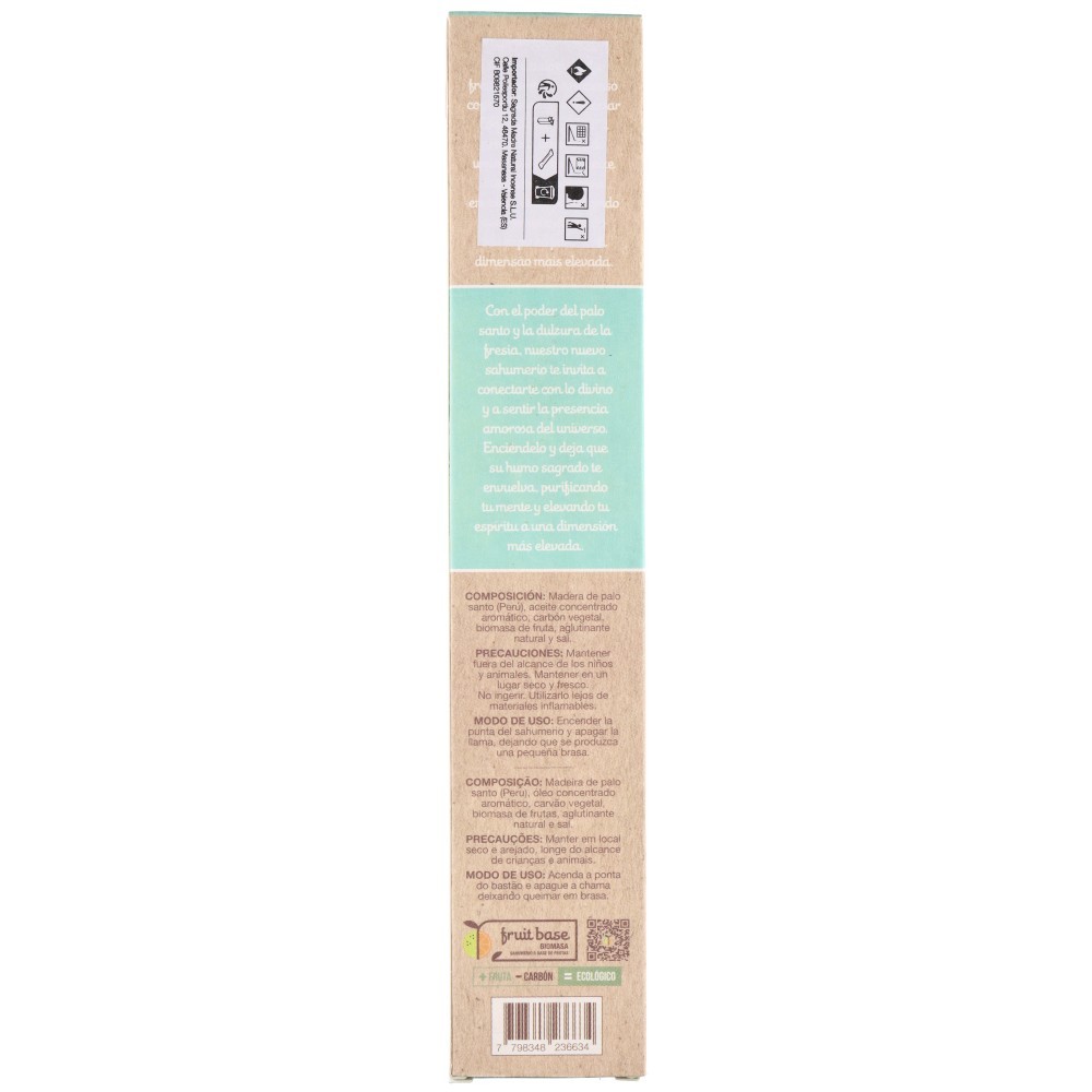 Composition: Palo santo wood (Peru), aromatic oil concentrate, charcoal, fruit biomass, natural binder and salt.