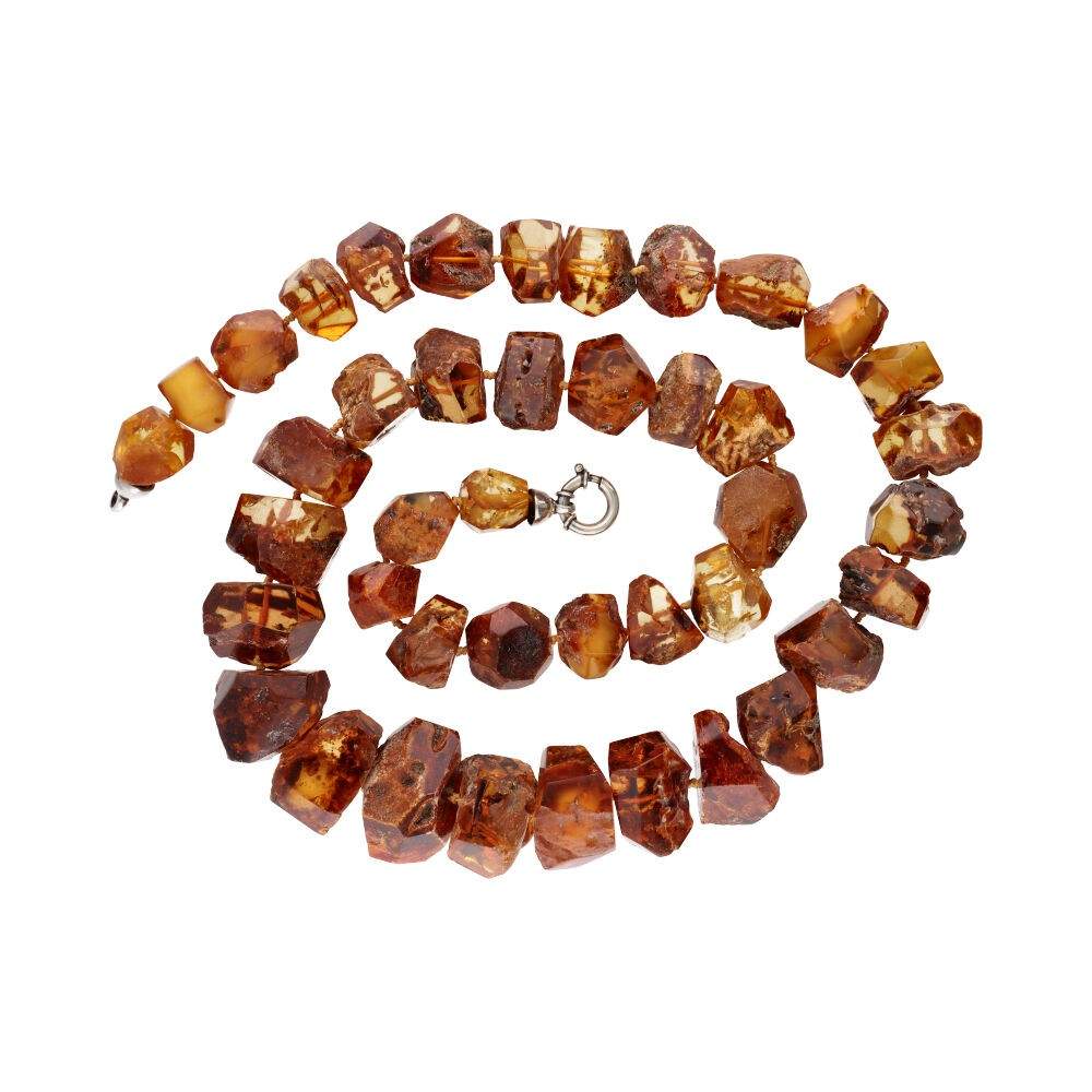 Rustic Amber Necklace with Insects in 925 Sterling Silver (KI14)