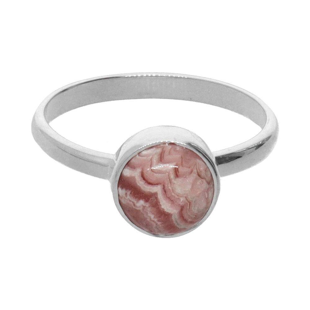 Small Rhodochrosite Circle Ring in Sterling Silver 925