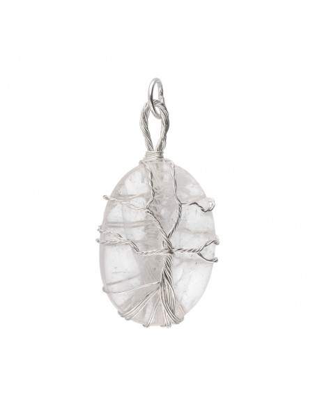 Tree of Life Quartz Pendant in Silver Plated Rhodium Plating