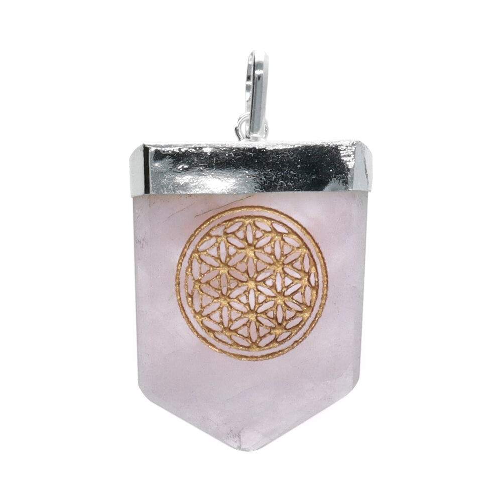 Silver Plated Rose Quartz Flower of Life Pendant