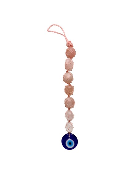 Rear View Mirror Accessory with Turkish Eye and Rose Quartz