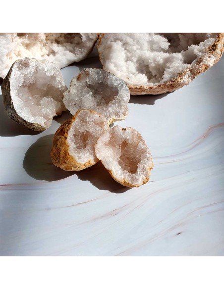 I would have liked them to be bigger in size but I see that geodes in general of all minerals have risen sharply in price in recent months. (Translated review)