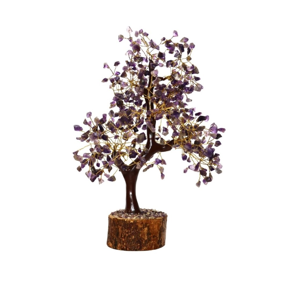 Grand arbre en améthyste avec base en bois