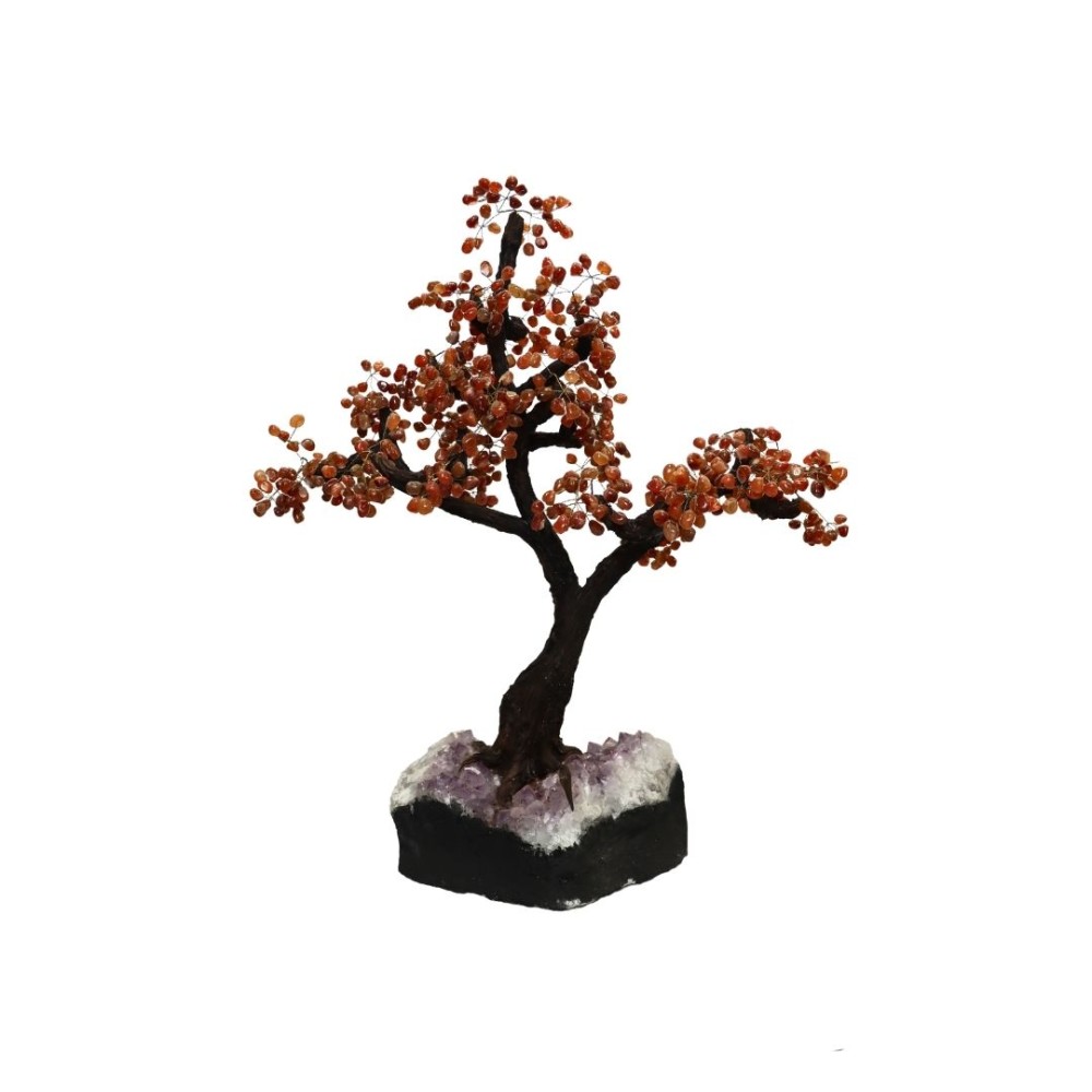 Arbre en cornaline et améthyste avec base en bois (AR22)