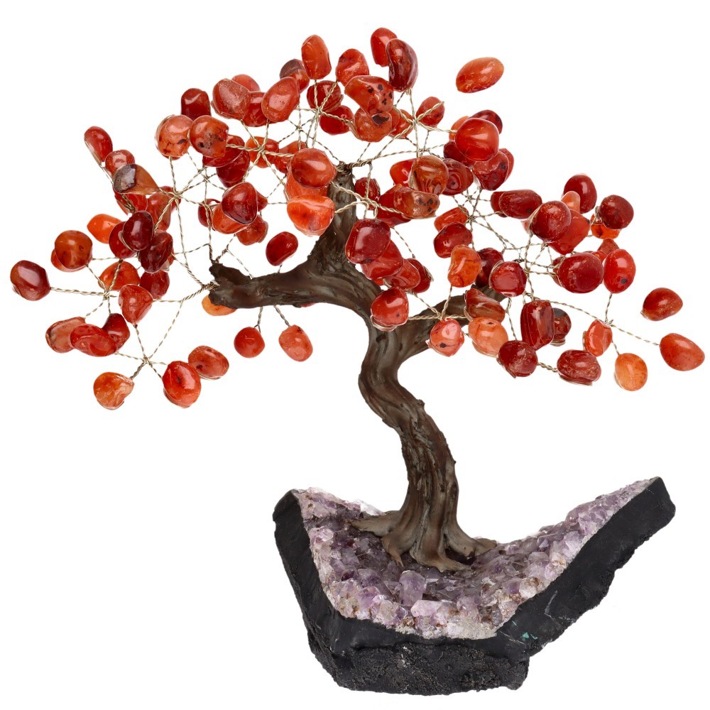 Arbre moyen en cornaline avec base en druse d'améthyste
