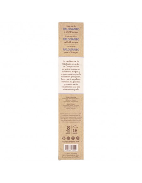 Fabriqué à partir de 100% de Palo Santo (Pérou), de Champa (Inde) et de liant à base de plantes