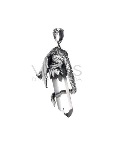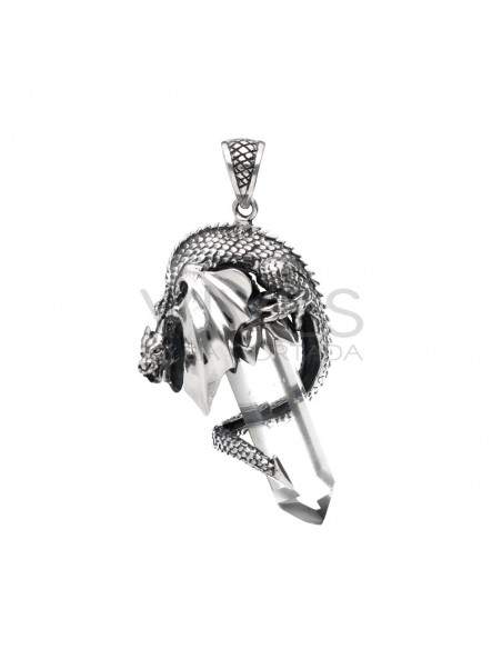 Pendentif Dragon en argent 925 avec ailes fermées en pointe de quartz