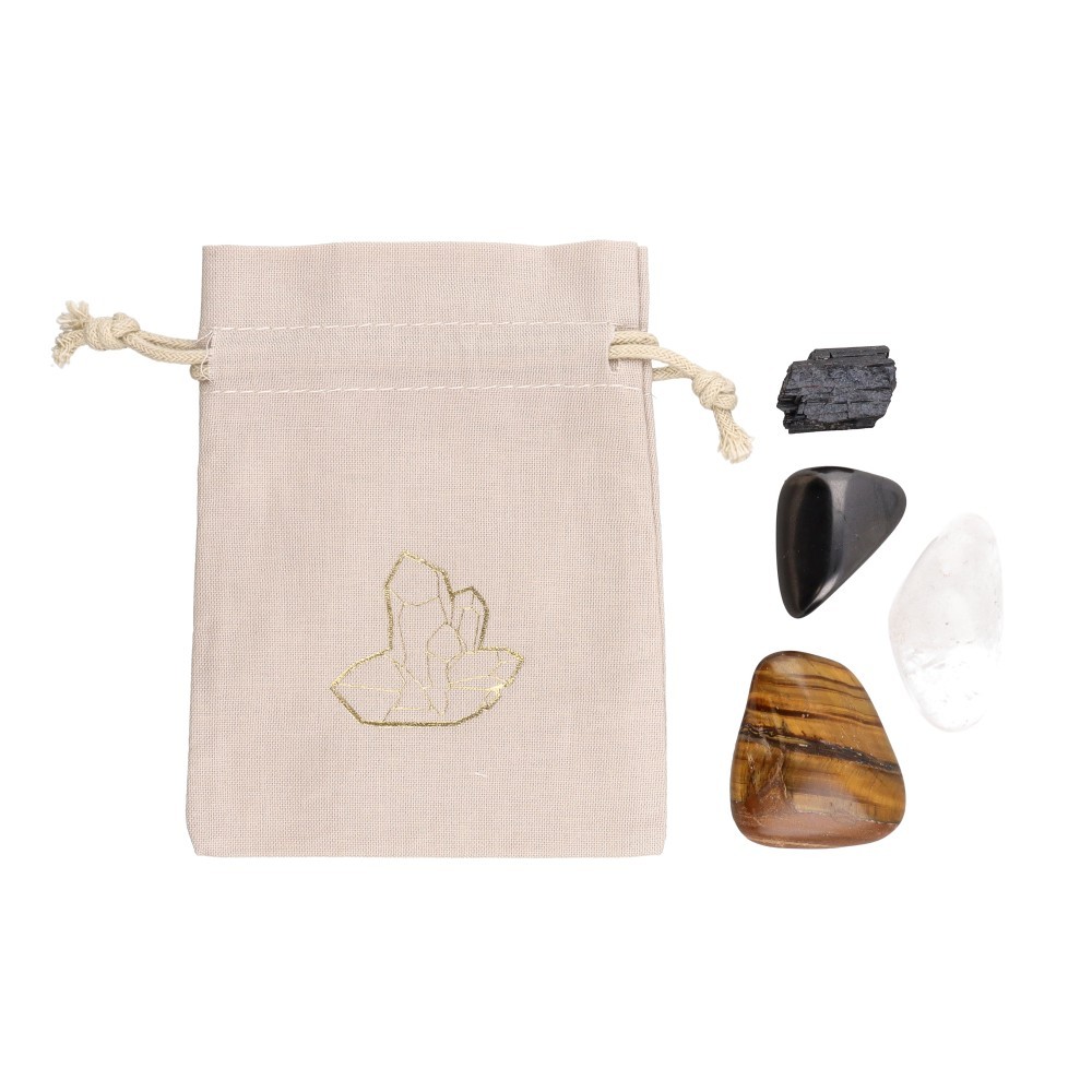L 'œil de tigre ajoute un élément de force et de confiance à cette combinaison. Ce minéral équilibre et renforce l'énergie personnelle, aidant à maintenir la sécurité intérieure tandis que les autres minéraux assurent la protection extérieure. Sa capacité à combiner protection et concentration complète les propriétés stabilisantes de la tourmaline noire et la clarté du quartz cristallin.