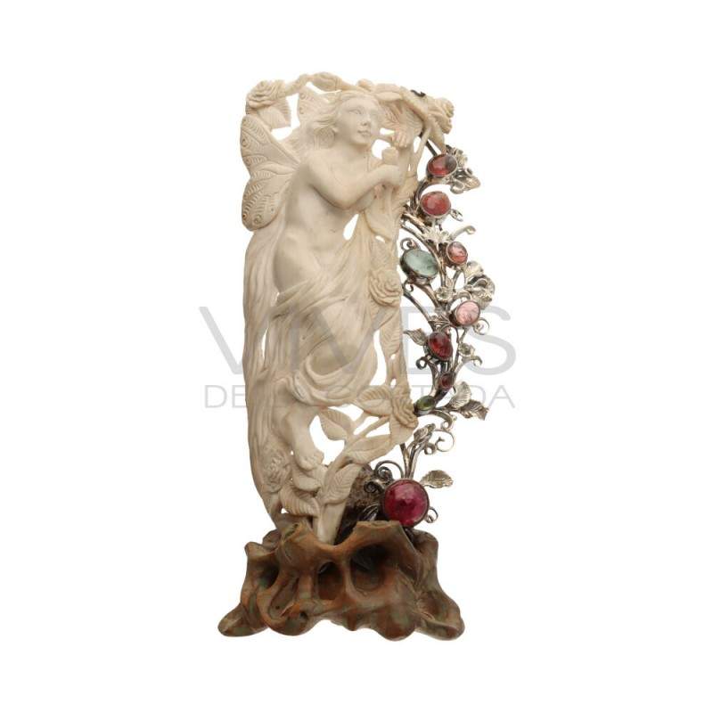 1.5cm"Taille approximative de la pièce : 8 x 18cm Taille approximative du cabochon : 0.5 - Poids approximatif de la pièce : 189gr Cette pièce comprend : Cabochons de tourmaline colorée Druse de quartz fumé incrustée de grenat spessartine Socle en bois Provenance : Russie Les pièces qui seront livrées sont similaires à celles figurant sur les photographies"
