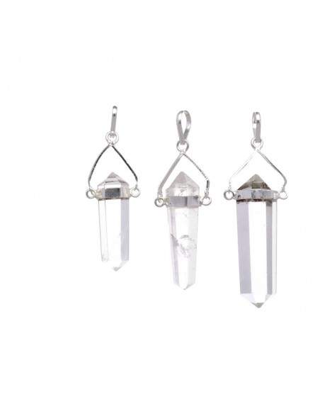 Pendentif de Quartz Blanc Bi-Terminé en Plaqué Argent