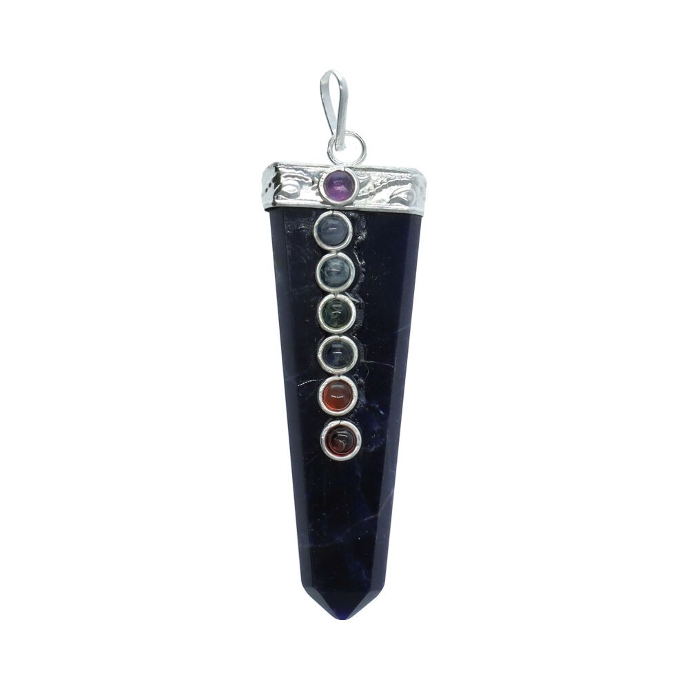 Pendentif argenté en forme de pointe plate avec chakras