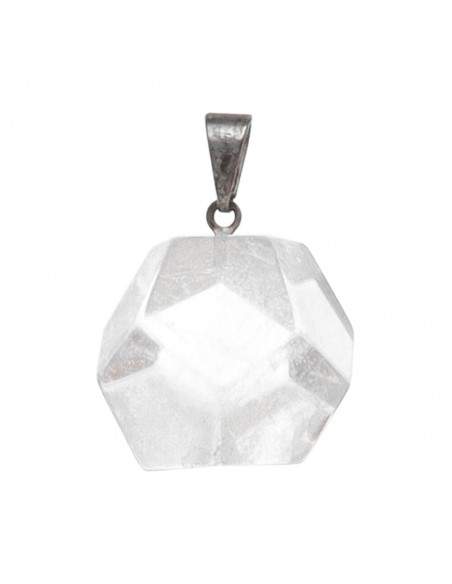 Pendentif dodécaèdre en quartz clair plaqué argent