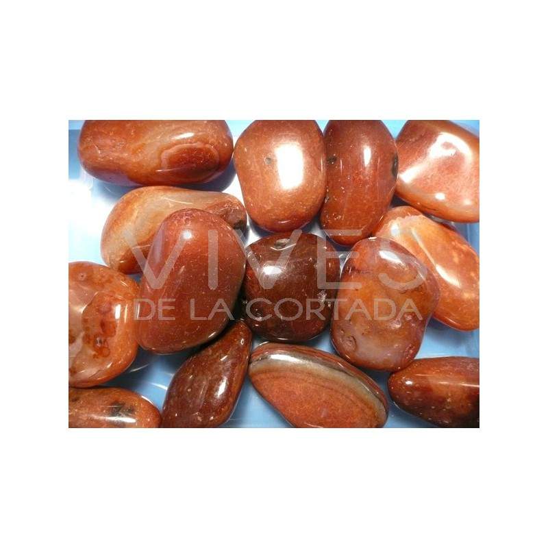 La cornaline ou Carneola est une variété de calcédoine translucide. L'oxyde de fer qui entre dans sa composition lui donne sa couleur orange et elle peut être rubanée ou de couleur uniforme. Elle appartient au groupe des silicates-tectosilicates et sa dureté est de 7 sur l'échelle de Mohs.