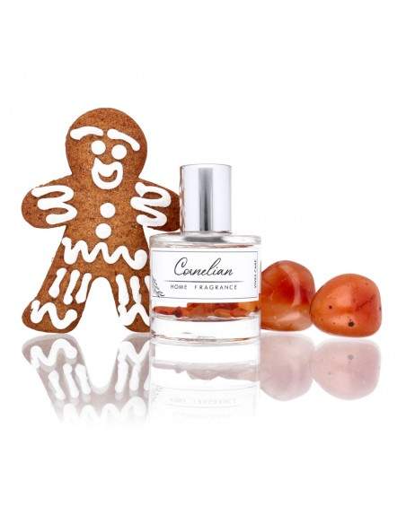 Parfum d'ambiance en spray avec de la cornaline minérale à l'intérieur.