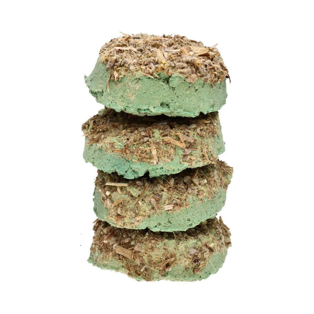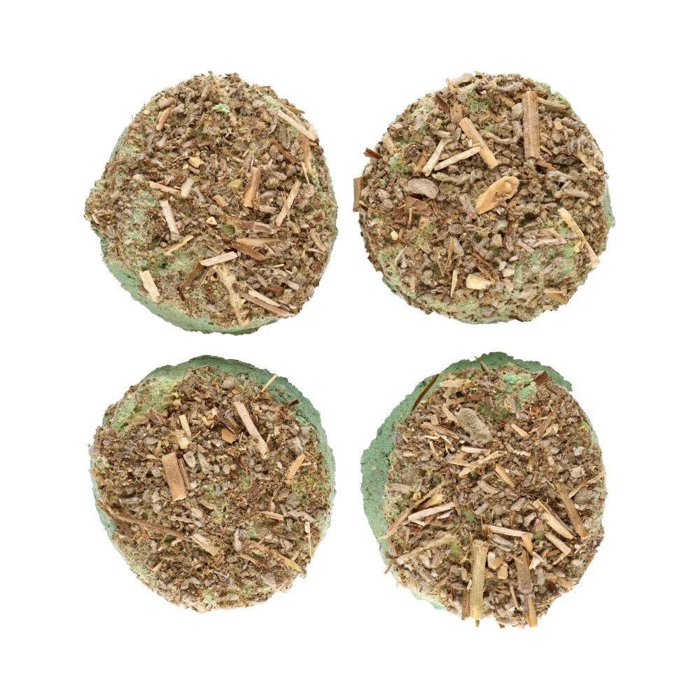Cada caja contiene cuatro discos de carbón coronados con hojas de ruda listo para usar (4cm de diámetro)