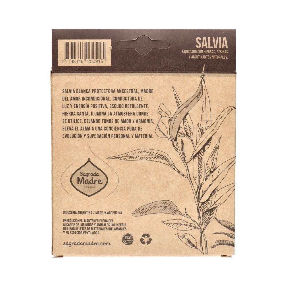 Hecho con salvia blanca, carbón, aglutinantes naturales, sal.