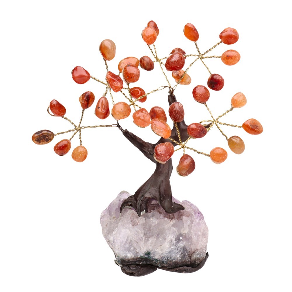 Árbol de Cornalina Mini con Base Drusa de Amatista