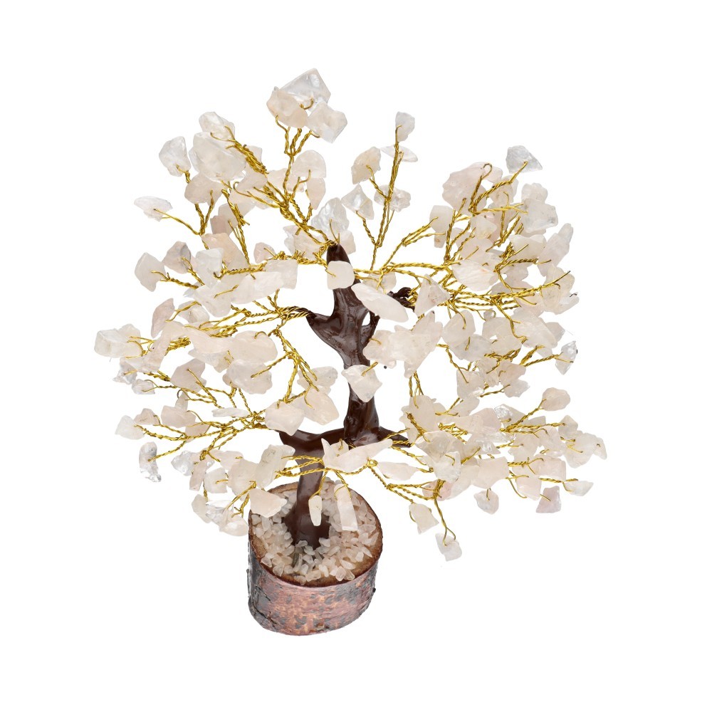 Árbol de Cuarzo Rosa Mediano con Base de Madera