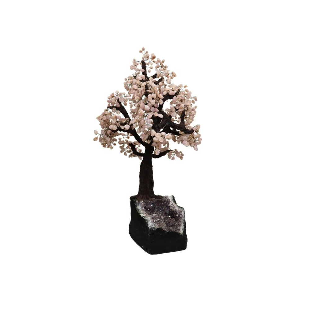 Árbol de Cuarzo Rosa con Amatista con Base de Madera (AR23)
