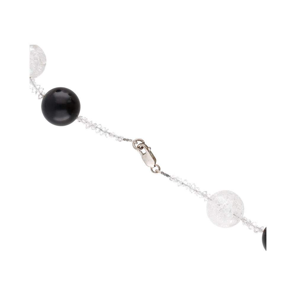 Collar de Azabache, Cuarzo Quebrado y Hérkimer en Plata de Ley 925 (24A)