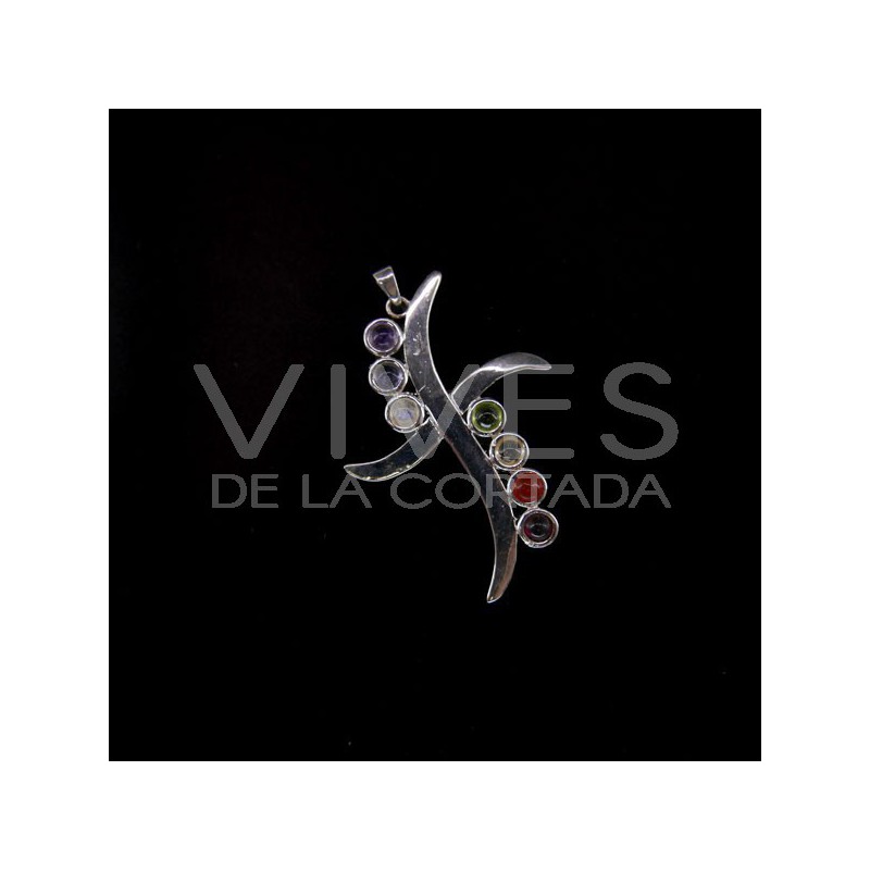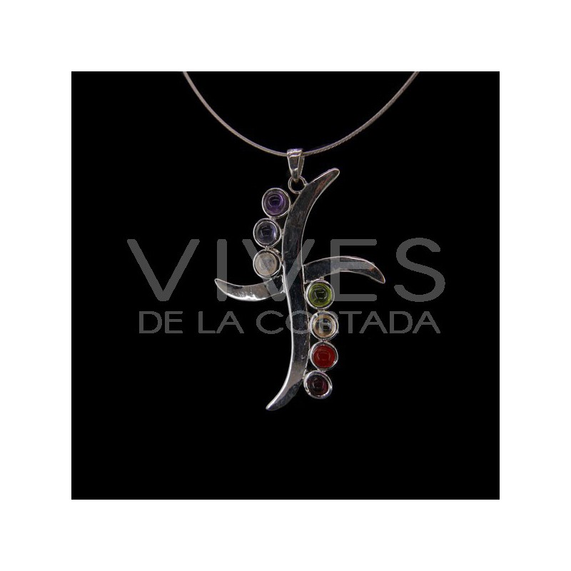Colgante Cruz con Minerales de los Chakras - Baño de Plata