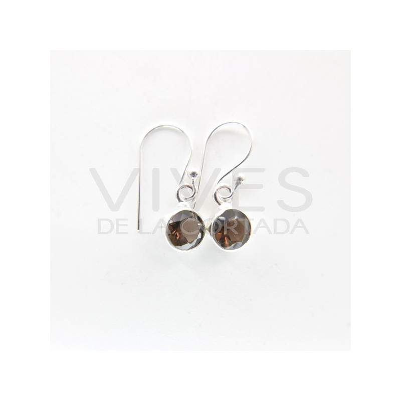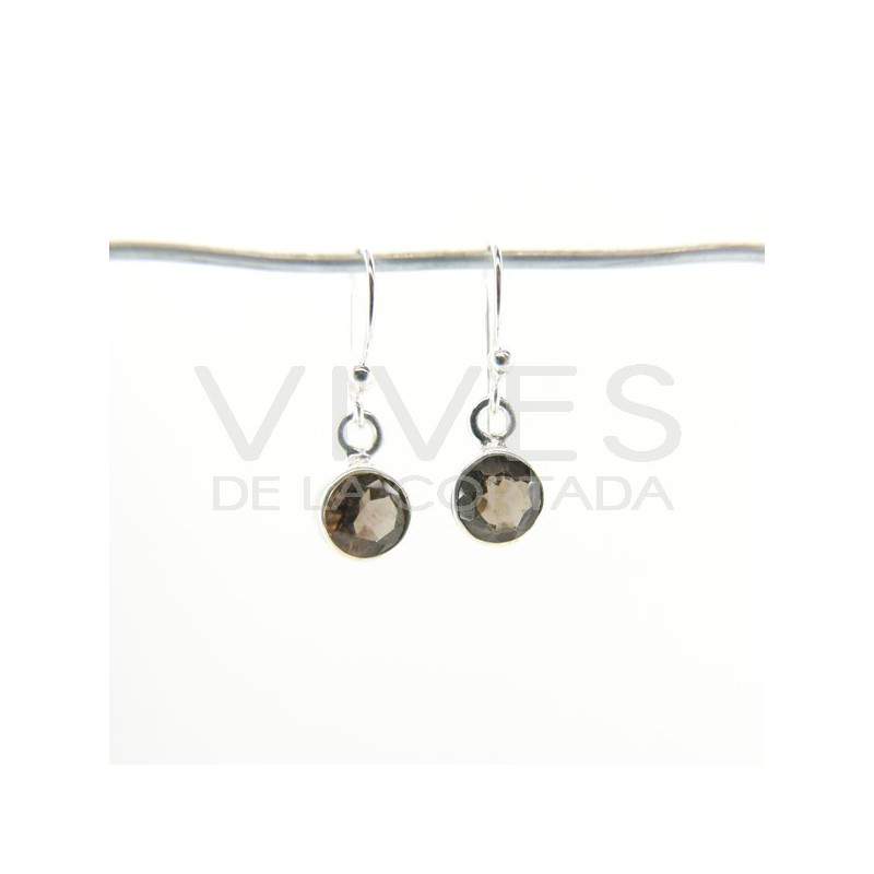 Pendientes de Cuarzo Ahumado Círculo Facetado - Plata de Ley 925