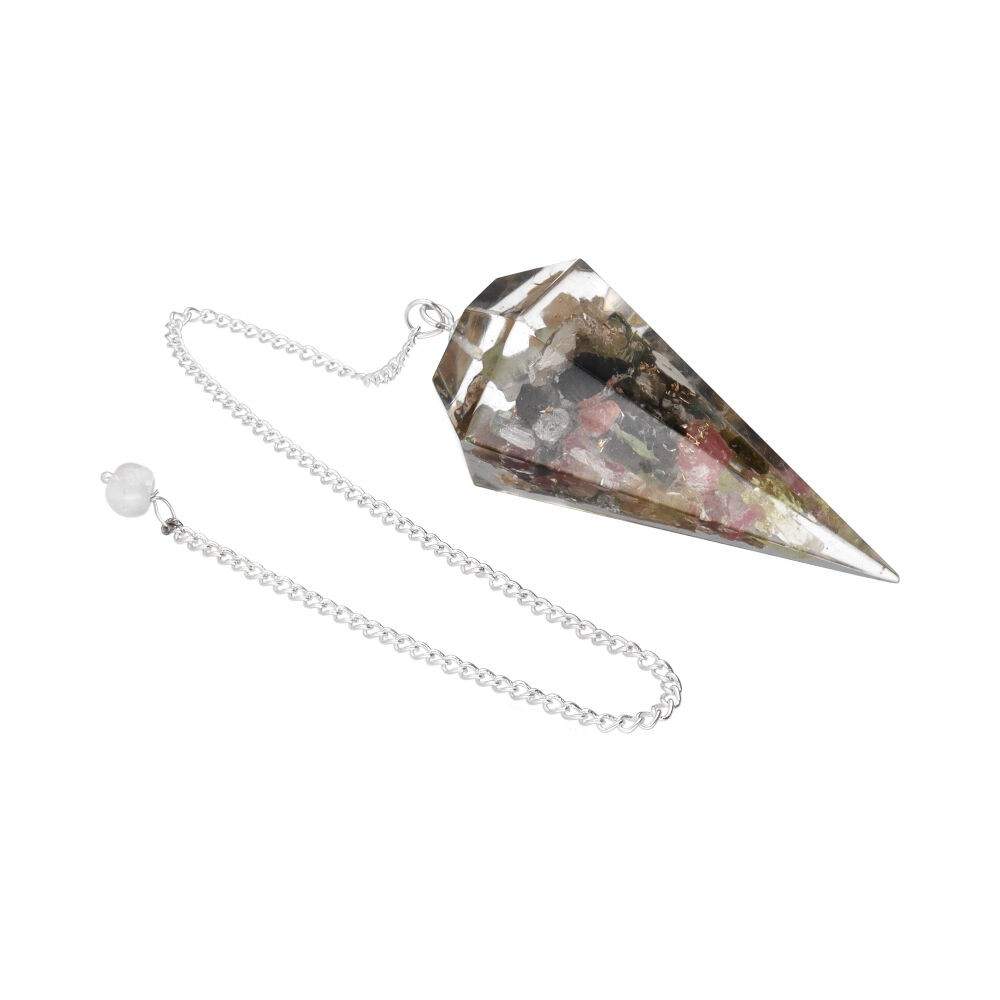 Péndulo de Resina con Turmalina Multicolor Estilo Orgonita (PEND53)