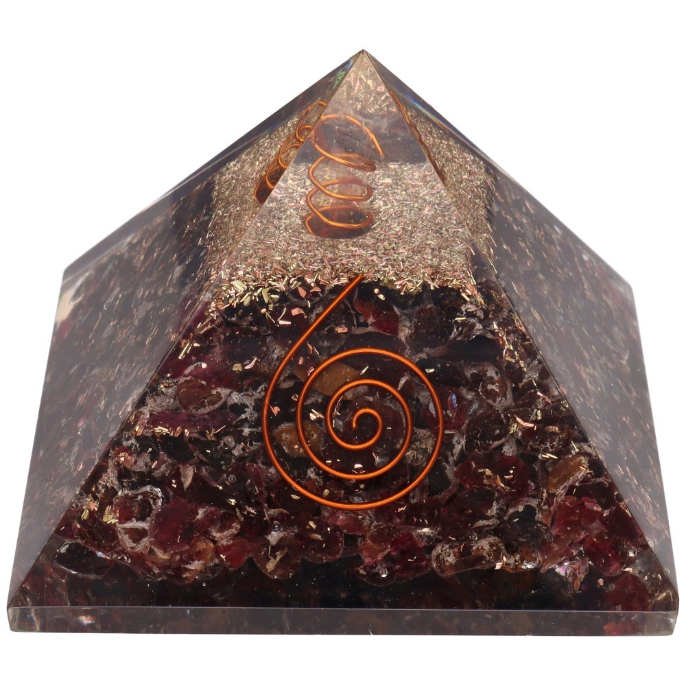 Pirámide Orgonita de Granate en Resina con Espiral 7x7cm