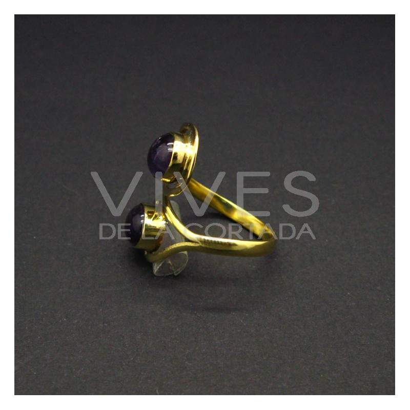 Anel Ajustável em Bronze com Ametista -5-