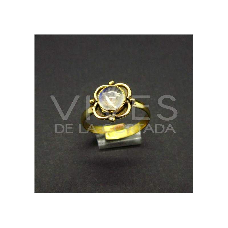 Anel Ajustável de Bronze Flor com Pedra da Lua -6-