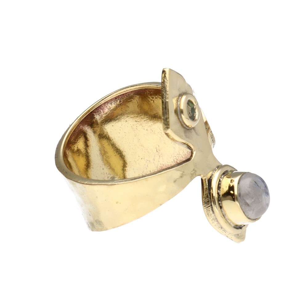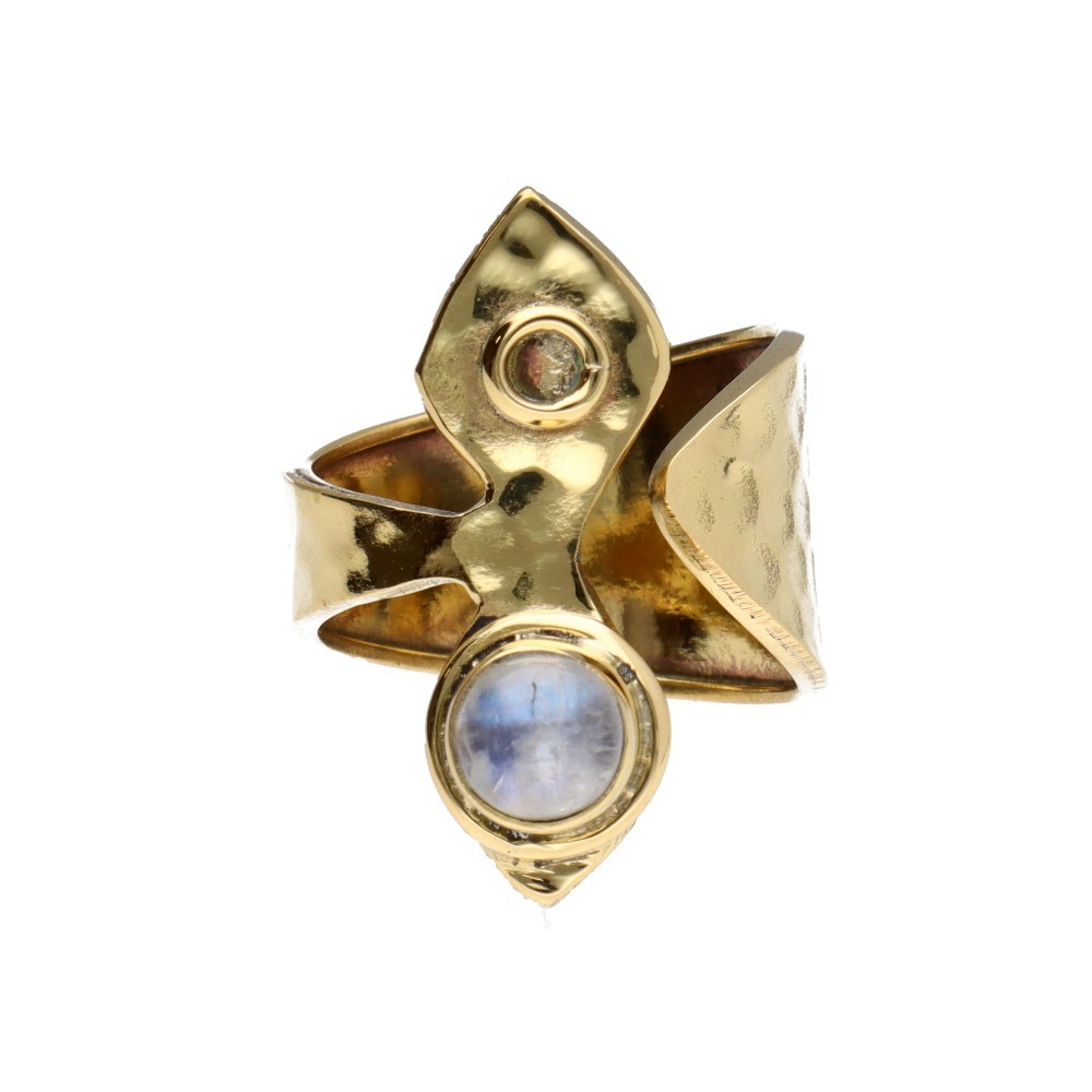 Anel de Bronze com Pedra da Lua e losango ajustável -15-