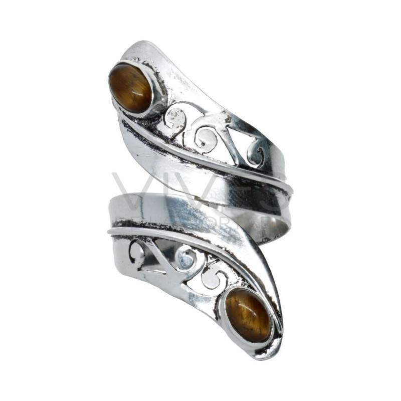 Anel prateado com Mineral -A66-