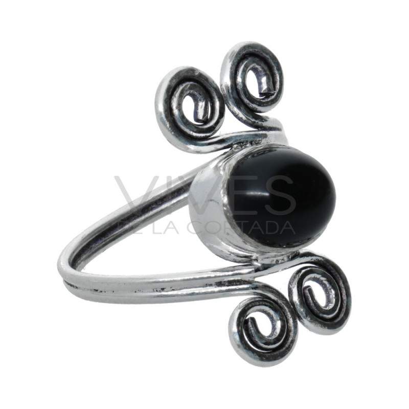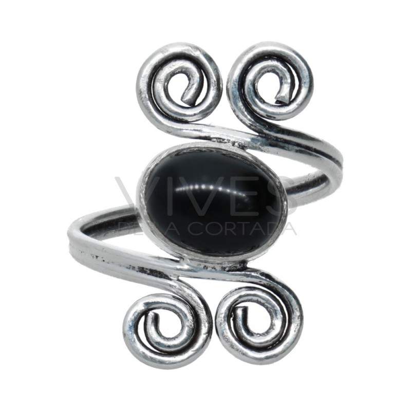 Anel prateado com mineral -A71-