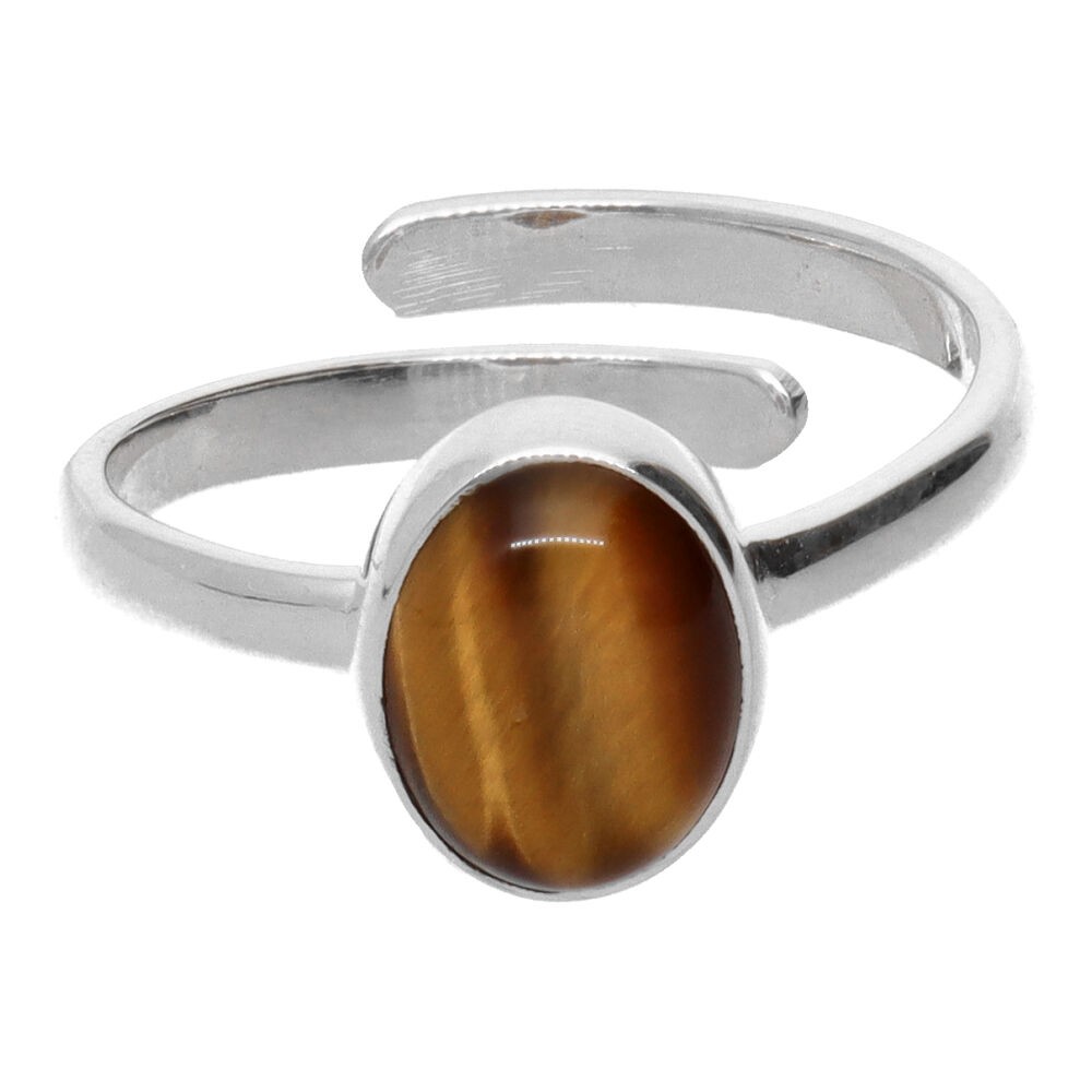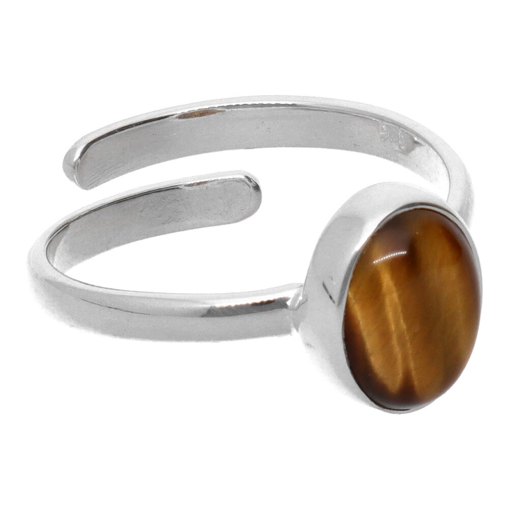 Pequeno Anel Oval de Tigre Ajustável em Prata 925 Esterlina