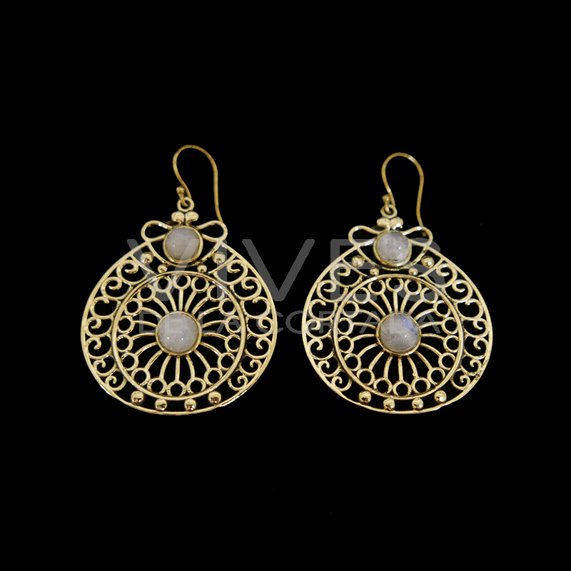 Brincos em bronze filigrana com mineral -101-